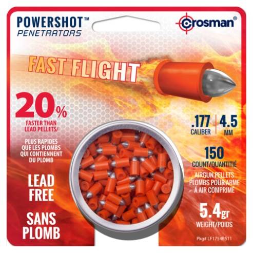 The Crosman Fast Flight Penetrators combine a performance lead-free body with a pointed steel tip to yield enhanced penetration and travel at more speed. These pellets are highly suggestable to hunters as well as target or recreational shooters with their great capabilities of killing long distance targets.