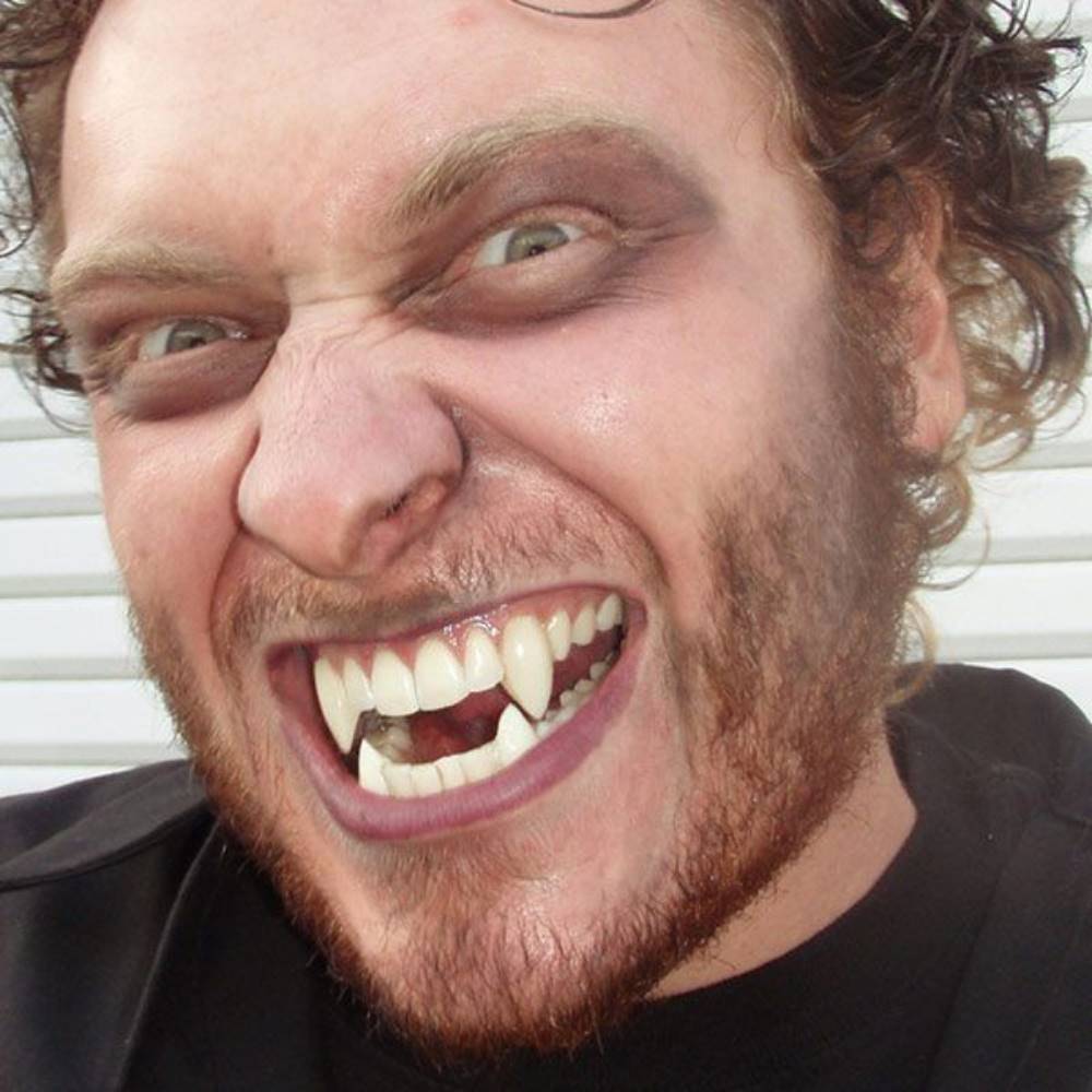 The Original Scarecrow Vampire Fangs - "Classic Deluxe Custom Fangs" are designed for people with average to larger teeth. They may fit either canines and/or incisors or bottom teeth. Fast, easy, comfortable, and totally realistic. Natural color fang caps are shiny, rigid, and beautifully contoured to look great in any mouth.